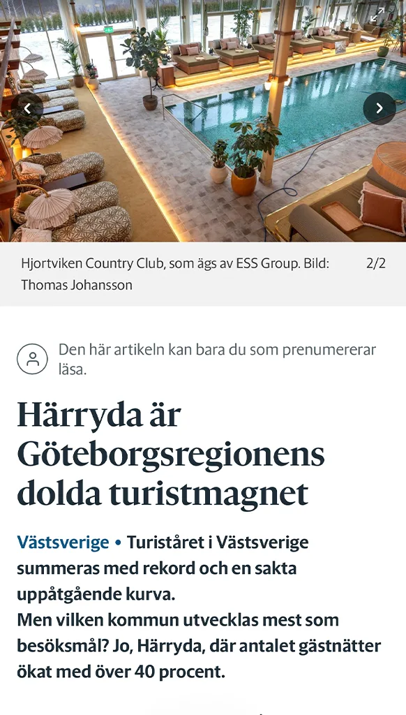 Hjortviken Country Club är stor bidragande faktor till Härrydas ökning som turistmål.